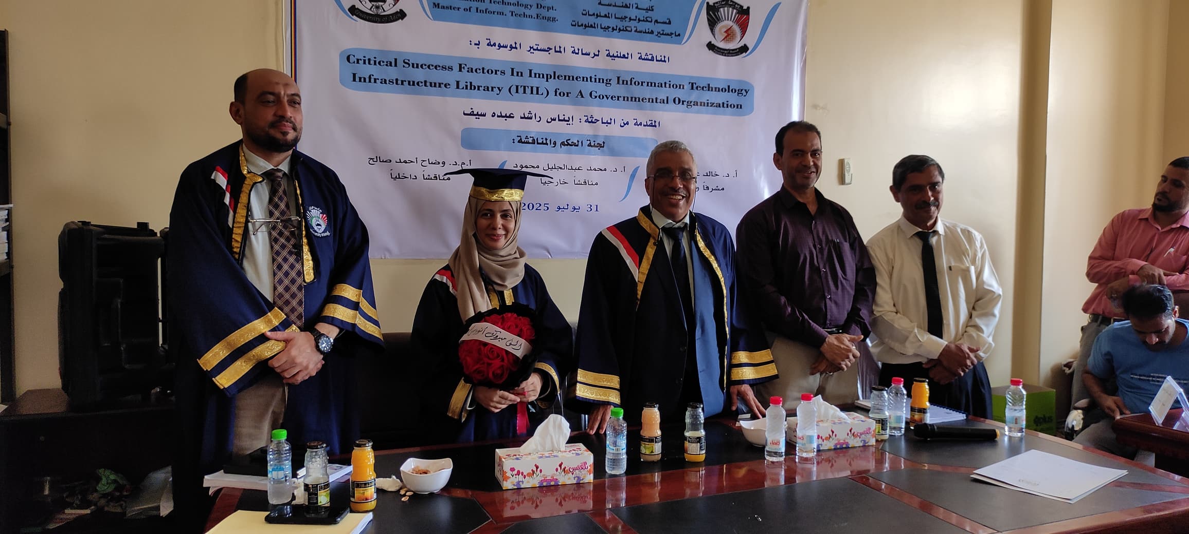 الماجستير بإمتياز للباحثة ايناس راشد من قسم تكنولوجيا المعلومات (IT) بكلية الهندسة بجامعة عدن اقترحت الدراسة هيكلاً تنظيمياً لإدارة عامة لتكنولوجيا المعلومات يسمح لها بالإشراف على تنفيذ إطار عمل ITIL