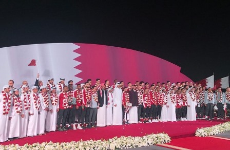 ورد الان: شاهد أمير قطر يستقبل لاعبي العنابي بالورود بعد التتويج (صورة) "شاهد" أمير قطر يستقبل لاعبي العنابي بالورود بعد التتويج (صورة)