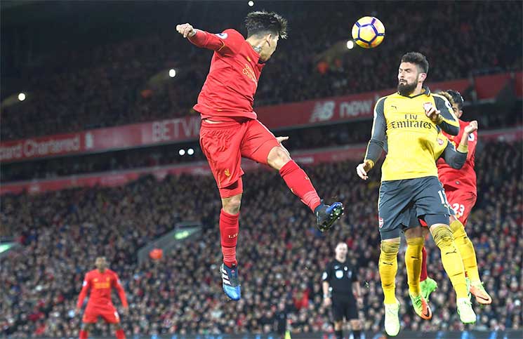 سجل كل من البرازيلي روبرتو فيرمينو والسنغالي ساديو ماني هدفا وصنع هدفا ليقودا ليفربول إلى فوز ثمين 3/1 على أرسنال، فيما قلص توتنهام الفارق مع تشلسي المتصدر عقب فوزه المثير على ايفرتون 3/2 في المرحلة ا