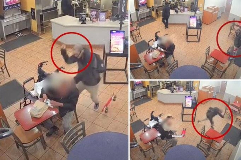 شاهد.. شخص يهاجم رجلا معاقا داخل مطعم ويطعنه مرتين في رقبته شاهد.. شخص يهاجم رجلا معاقا داخل مطعم ويطعنه مرتين في رقبته