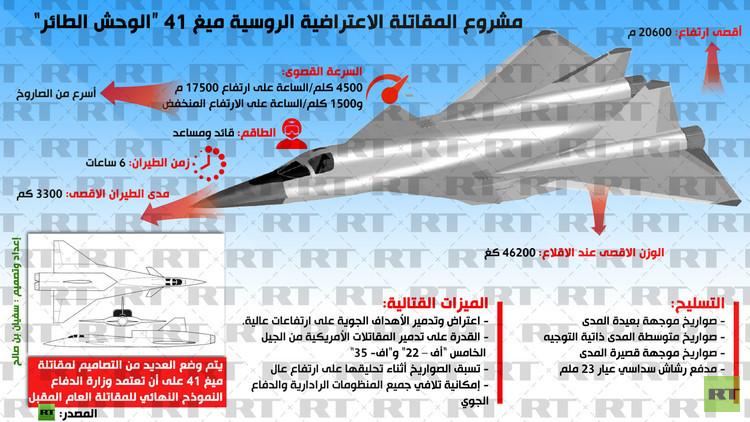 روسيا تكشف لأول مرة عن "الوحش الطائر"...المقاتلة ميج 14 أسرع من الصاروخ وتمتلك القدرة على تدمير واعتراض إف (35 - 22) الامريكية ( صورة - تفاصيل )