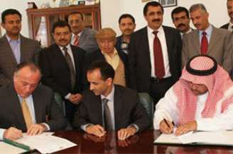 وقع أمس السبت في العاصمة اليمنية بصنعاء على مذكرة تفاهم في مجال استكشاف الموارد المعدنية بين وزارة النفط والمعادن ممثلة بهيئة المساحة الجيولوجية والثروات المعدنية والشركة السويسرية (سي آ ر ان آي ) وممثل عن سمو الشيخ محمد بن خليفة بن زايد آل نهيان ومجموعة آفاق الخليج الإماراتية بحضور وزير النفط والمعادن احمد عبد الله دارس
