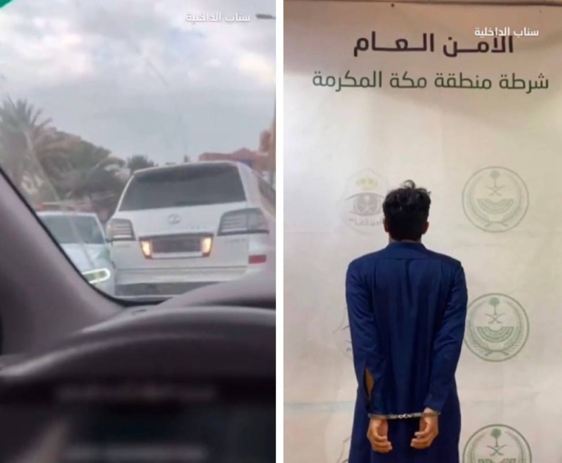 شاهد: بيان أمني بشأن القبض على سائق سعودي ظهر في مقطع فيديو يصدم مركبة رسمية ويهرب من الموقع في مكة شاهد: بيان أمني بشأن القبض على سائق سعودي ظهر في مقطع فيديو يصدم مركبة رسمية ويهرب من الموقع في مكة