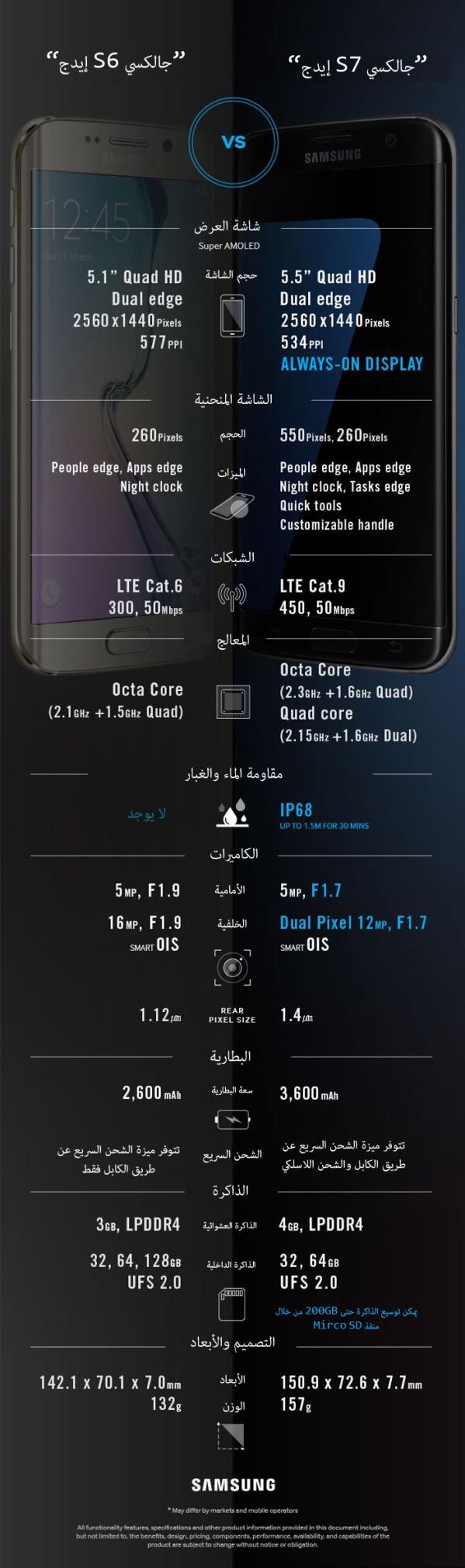 إنفوجراف: مقارنة بين جوال "جالكسي S6 إيدج" و"جالكسي S7 إيدج" إنفوجراف: مقارنة بين جوال "جالكسي S6 إيدج" و"جالكسي S7 إيدج"