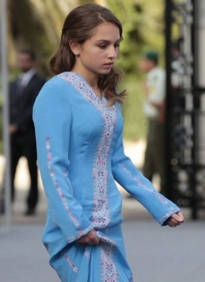 اختارت الأميرة الشابة، على خطى والدتها، أزياءً شعبية ارتدتها في مناسبات عدة لا سيما تلك الوطنية، منها الإطلالة التي كانت فيها بشعر قصير، مرتدية ثوباً بنفسجياً فاتحاً مطرزاً باللونين الوردي والبنفسجي الغامق.