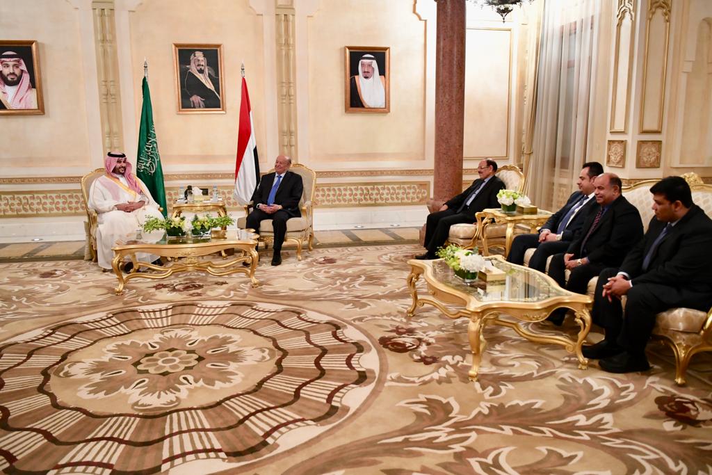 علي محسن يغادر وبن سلمان يعلن موقفا حاسما من الشرعية والتمرد .. تفاصيل اجتماع رفيع بين هادي والأمير خالد بحضور اللجنة الحكومية