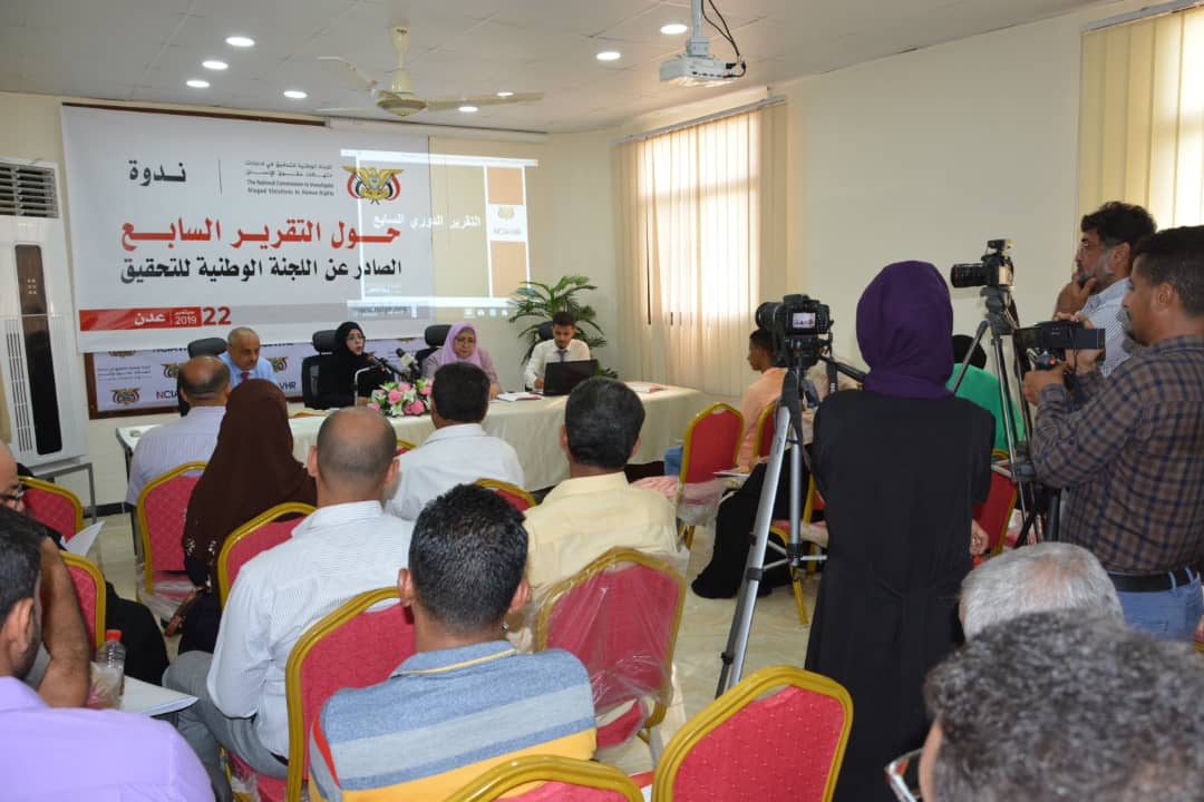 نظمت اللجنة الوطنية للتحقيق في ادعاءات انتهاكات حقوق الإنسان بمقرها في العاصمة المؤقتة عدن صباح اليوم ( الاحد ) الموافق 22 سبتمبر 2019 ندوه نقاشية تم خلالها استعراض التقرير السابع الصادر عن اللجنة خلال الفترة من 1 فبراير وحتى 31 يوليو 2019م والملخص التنفيذي للتقرير والذي كان قد تضمن بيانات حول أبرز الانتهاكات التي قامت اللجنة برصدها وتوثيقها والتحقيق فيها ورفع ما يلزم منها للجهات المختصة بغرض استكمال الاجراءات القانونية بشانها ومن ثم تحويلها الى القضاء ليقول كلمته الفصل فيها.