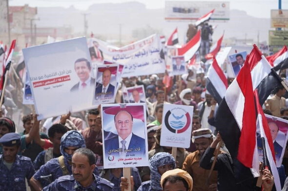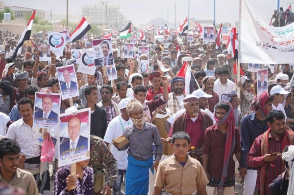 خرجت مظاهرات حاشدة، اليوم الأحد، في محافظة شبوة لتأييد السلطات الشرعية ورفض دعوات الفوضى الرامية إلى تمزيق اليمن الواحد.
