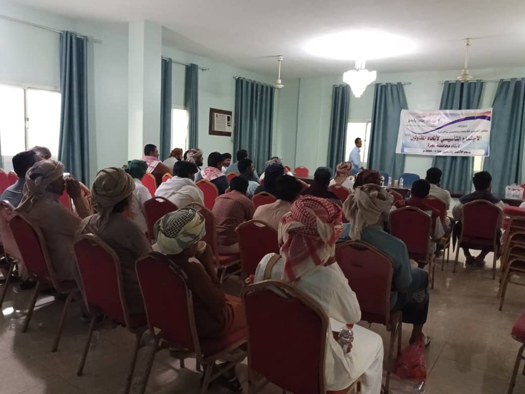 وطالب المجتمعون كافة المقاولين الى الالتفاف حول الفكرة والتضامن من أجل إنشاء كيان نقابي يدافع عن كافة حقوقهم ويلبي طموحاتهم والعمل على أن لاعضائه النصيب الاوفر في تنفيذ المشروعات وتنفيذ خطط التنمية بالمهرة.