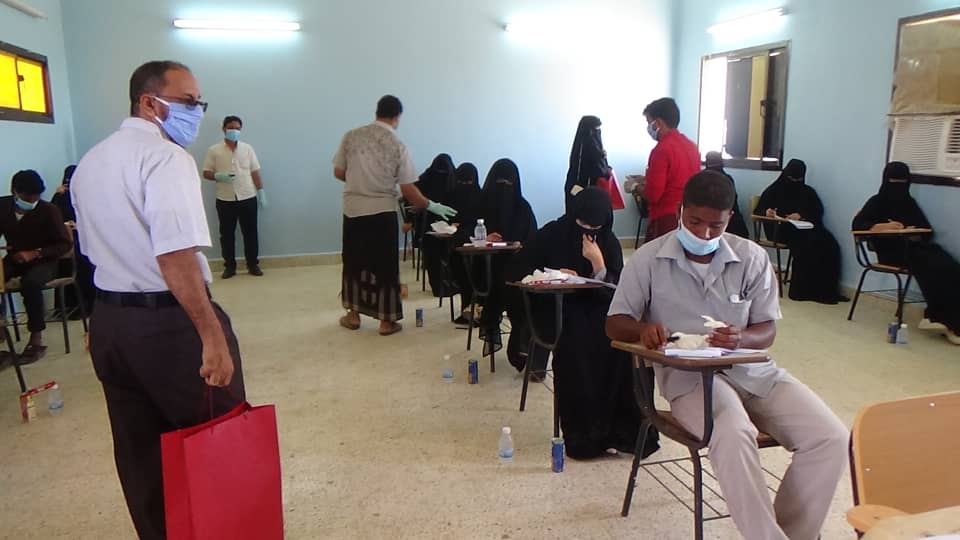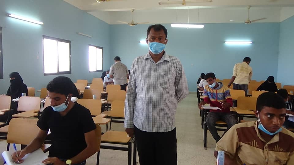 و بين عميد كلية التربية بالمهرة أنا اجمالي عدد الطلاب المتقدمين للاختبارات لهذا العام ٢٦٠ طالب و طالبة مقسمين على مجموعتين تبدا المجموعة الأولى طلاب وطالبات المستوى الاول والرابع من 12 حتى 23 من سبتمبر فيما ستبدا المجموعة الثانية من 24 سبتمبر وحتى 7من اغسطس، جميعهم ملتزمين بالارشادات الوقائية و التبية بمراعاة التباعد الاجتماعي في الطرقات واللجان حيث تم إضافة قاعات امتحانات أخرى وترك مسافة كافية بين كل طالب والتشديد على ارتداء الكمامات وتنظيم عملية الدخول و الخروج للحرم الجامعي كذلك وجود جهاز لقياس درجة حرارة الطلاب مع توفير عيادة طبية للطوارى أثناء اداء الامتحان.