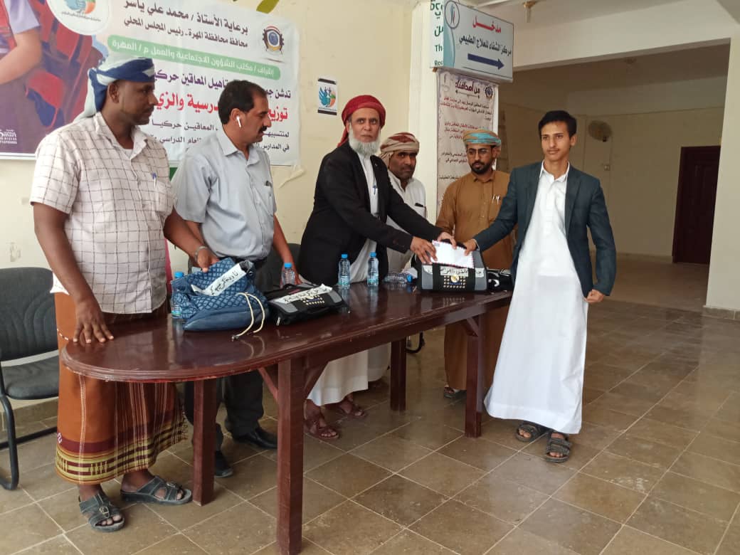 جمعية رعاية وتأهيل المعاقين حركيا بالمهرة تدشن توزيع الزي و الحقيبة المدرسية لطلابها بالمدارس الحكومية و الاهلية