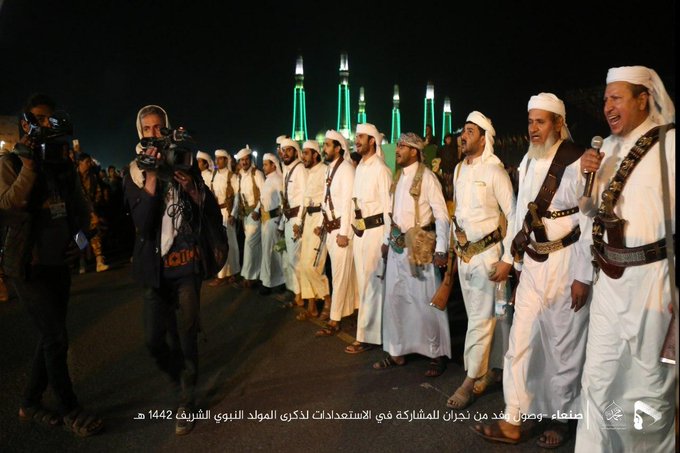 وبث الإعلام الرسمي للحوثيين فيديو لمجموعة قيل إنها من نجران، جاءت لصنعاء للاحتفال بذكرى المولد النبوي الشريف.