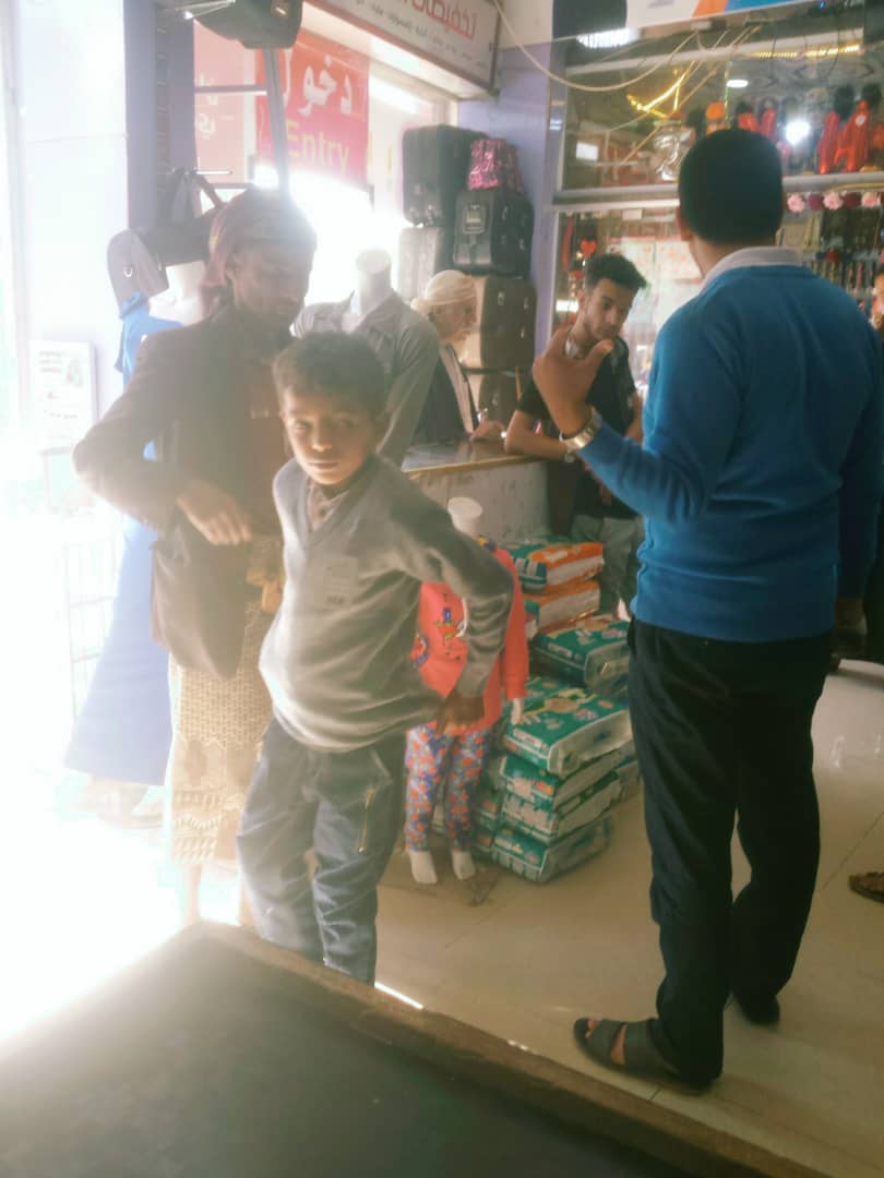 وحصل "اليمن السعيد" على صور حصرية للاطفال وهم في مركز الفضاء مول بمفرق جبلة بعد العثور عليهما حيث تبرع فاعل الخير بشراء ملابس جديدة لهما من مركز الفضاء مول