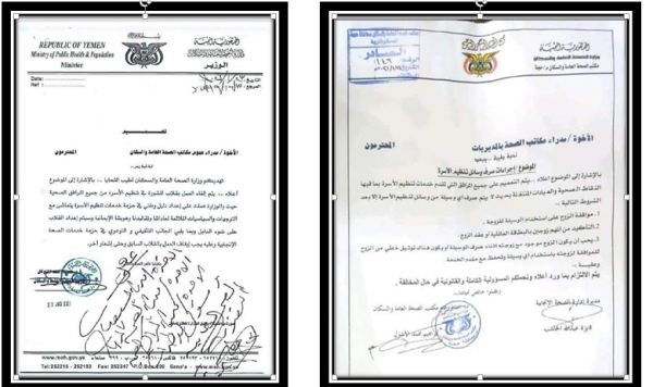 ونقلت صحيفة الشرق الأوسط، عن أحد موظفي وزارة الصحة بصنعاء، قوله، " إن وزير صحة الحوثيين، طه المتوكل، وهو خطيب مسجد، اجتمع منذ أيام مع قيادة الوزارة، وغالبيتهم أعضاء في الميليشيات، وأبلغهم أن استمرار العمل في سياسة تنظيم النسل مخطط استعماري هدفه نقص عدد السكان حتى يتمكن الغرب من السيطرة على البلاد".