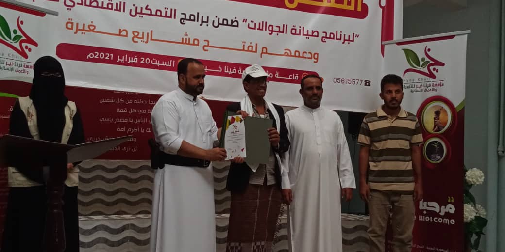 وكانت الأستاذة فاطمة خوار المدير التنفيذي لمؤسسة فينا الخير للتنمية والأعمال الانسانية قد ألقت كلمة أشارت فيها إلى أن النجاح الذي حققته هذه الدورة تدفع بالمؤسسة لإقامة دورات أخرى وفي مجالات متعددة بهدف تأهيل الشباب وتمكينهم من العمل، واضافت تدرب 25 شابا من مختلف مديريات محافظة المهرة ونأمل أن يسهم تأهيلهم في تمكينهم من الحصول على فرص عمل أو فتح مشاريع صغيرة مشيرة إلى أنه سيتم تسليم المتدربين حقيبة متكاملة بها ادوات الصيانة.