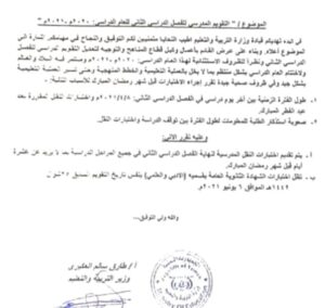 ورد للتو : بيان هام وعاجل من وزارة التربية والتعليم وتشديد على التزام جميع مدراس الجمهورية (وثيقة)