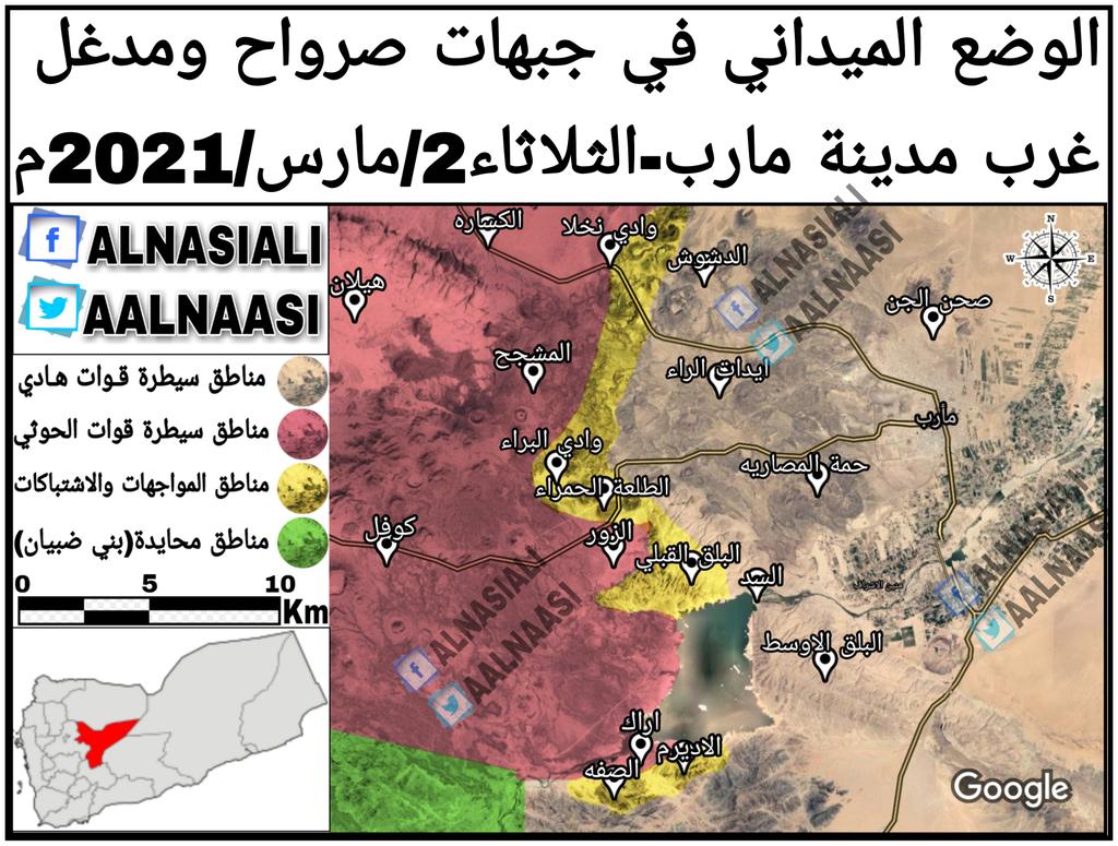 ورد للتو : بعد اشتباكات عنيفة.. آخر خريطة معارك مأرب تكشف أين وصل الحوثيون والشرعية