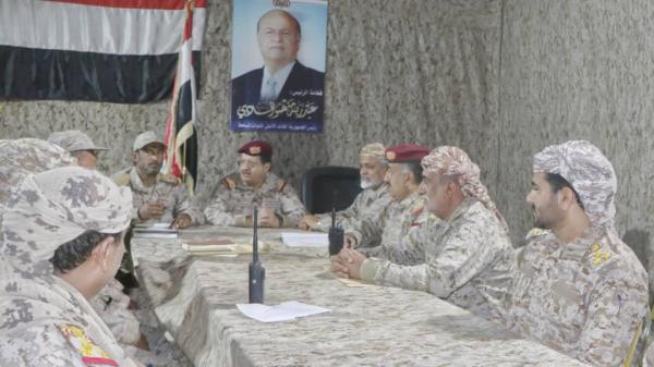 وتحدث أن المؤسسة العسكرية ستظل كتلة متماسكة ومتلاحمة وعند مستوى طموحات الشعب اليمني. وبحسب المركز الإعلامي فإن وزير الدفاع نقل خلال الإجتماع تحيات القيادة السياسية ممثلة بفخامة رئيس الجمهورية القائد الأعلى للقوات المسلحة.. مُشيداً بثبات وبسالة الأبطال في مختلف الجبهات وما يتمتعون به من معنوية وكفاءة قتالية عالية..