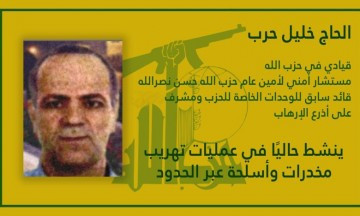 وجاء في التغريدة، "خليل يوسف حرب هو زعيم بارز في "حزب الله" اللبناني، وهو مستشار مقرب من الأمين العام حسن نصر الله، حيث أشرف على العمليات العسكرية للتنظيم في العديد من دول الشرق الأوسط.