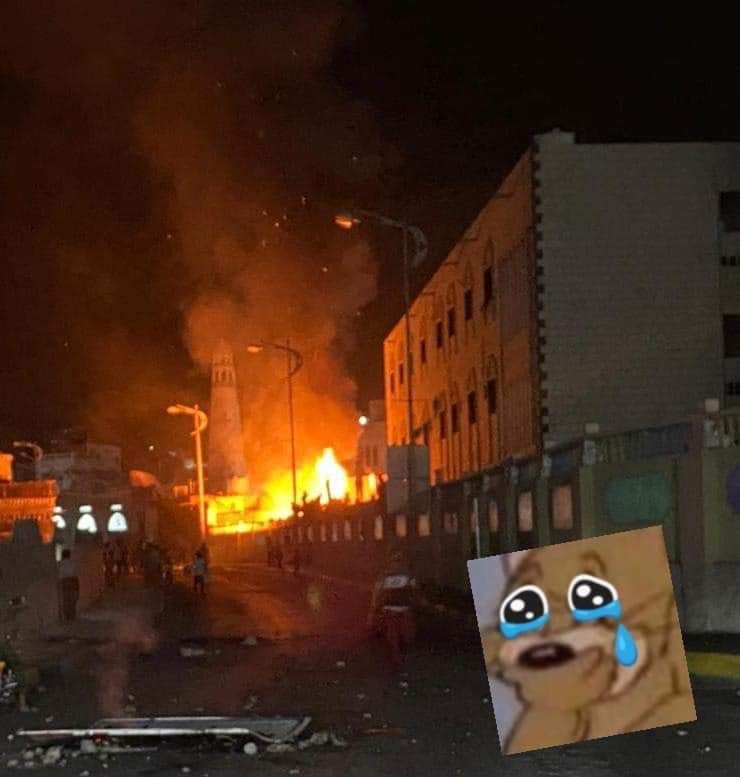حضرموت – المساء برس| أظهرت صور ومقاطع فيديو يتم تداولها الآن على منصات التواصل الاجتماعي حجم الدمار والحرائق التي تشهدها الشوارع والمباني الحكومية في مدينة المكلا، عاصمة محافظة حضرموت على إثر تصاعد الاحتجاجات الغاضبة المنددة بتدهور الوضع المعيشي وانهيار العملة والخدمات الاساسية.