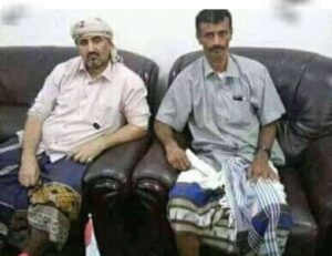 وفي الصور يظهر القاتل فاروق الكعلولي إلى جوار زعيم المليشيات المتمردة عيدروس الزبيدي.