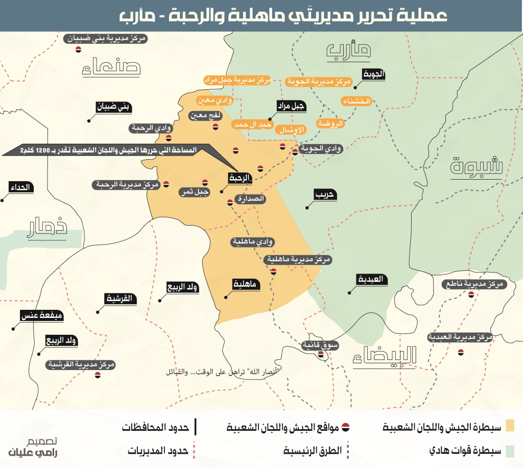 كشف المتحدث باسم قوات صنعاء، العميد يحيى سريع، السبت الماضي، تفاصيل عمليّة عسكرية جديدة في جبهات جنوب مأرب، أُطلق عليها اسم «عملية النّصر المبين الثالثة». هذه العمليّة التي شاركت فيها نخبة من مقاتلي الجيش اليمني و «اللجان الشعبية»، وإلى جانبهم مجموعة من أبناء قبائل مراد، أدّت إلى تحرير مديريتَي ماهلية ورحبة بمساحة إجمالية قُدّرت بحوالي 1200 كيلو متر مربع، على رغم تدخّل طيران التحالف السعودي – الإماراتي بأكثر من 484 غارة جويّة في محاولة لإيقاف ذلك التقدّم.
