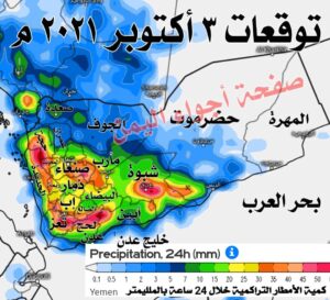 وتابع :” كذلك هناك توقعات بتشكل حالة مدارية في بحر العرب بعد ٧ أكتوبر ٢٠٢١م ، في وقت الموسم الثاني لأعاصير بحر العرب والذي يبدأ من تاريخ ٢١ سبتمبر ويستمر حتى ٢١ نوفمبر من كل عام .