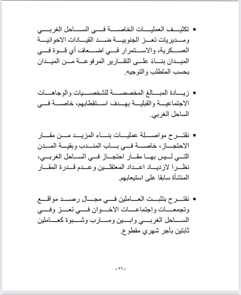 وأكد الشلفي، إن الوثائق كشفت عن توصيات ومقترحات وأعمال استخباراتية نفذت فعلا، بعضها عسكري وبعضها عمليات خاصة شملت تعز وسقطرى والساحل الغربي وشبوة.