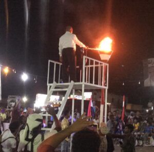 واحتشدت جموع في ساحة الشهداء بمدينة الخوخة في فعالية ايقاد شعلة الذكرى 59 لثورة سبتمبر المجيدة، نظمها مجلس تهامة الوطني بحضور رسمي، تصدرته قيادات المجلس برئاسة عضو مجلس النواب عن مدينة زبيد، النائب محمد ورق.