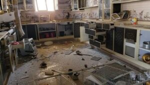 وتظهر الصور حجم الدمار الذي لحق بمنزل العرادة إثر القصف الصاروخي .