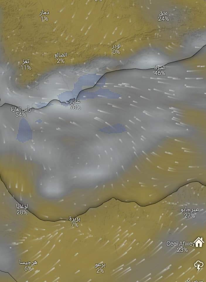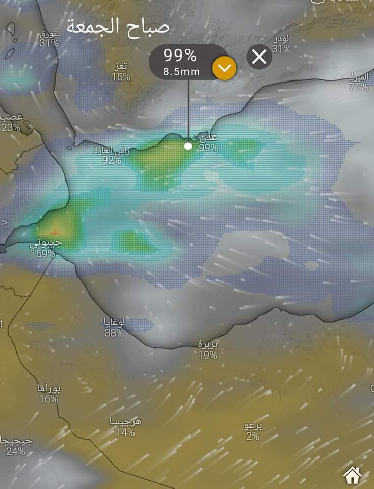 وتوقع الفلكي بن عامر أن عدن ستشهد غدا الخميس أجواء غائمة يرافقها هطول أمطار خفيفة ستنعم خلالها المدينة بأجواء جميلة.