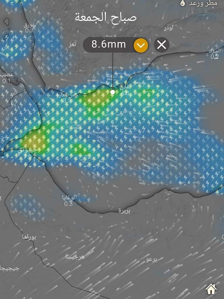 كما لفت بن عامر إلى "اشتداد نسبة هطول الأمطار حسب التوقعات يوم الجمعة بأذن الله كما موضح في الصور".
