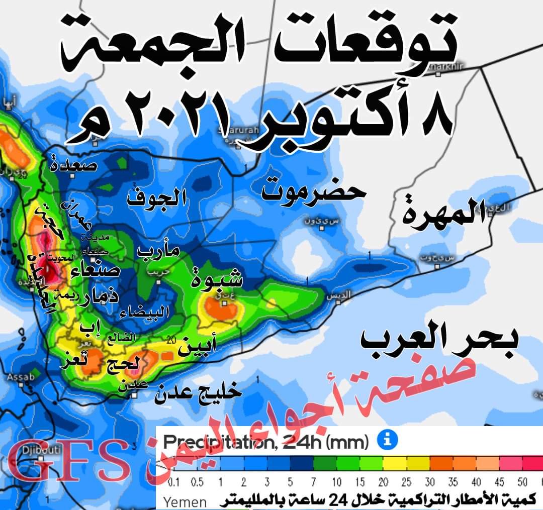 وأوضح بانه من المتوقع اختلاف كميات الأمطار وأوقات هطولها من منطقة إلى أخرى حيث يتوقع أن تكون الأمطار غزيرة جدا على المناطق المغطاة بالألوان الحمراء والبرتقالية والصفراء والخضراء في الخارطة المرفقة ، فيما تتراوح كمياتها ما بين المتوسطة إلى خفيفة على المناطق المغطاة باللونين الأزرق الداكن والفاتح.