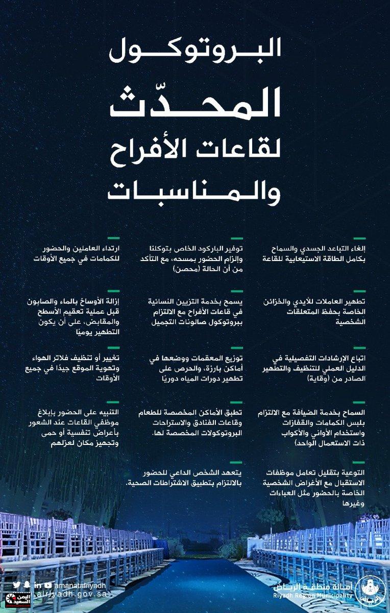 – تطبق الأماكن المخصصة للطعام وقاعات الفنادق والاستراحات البروتوكولات المخصصة لها.