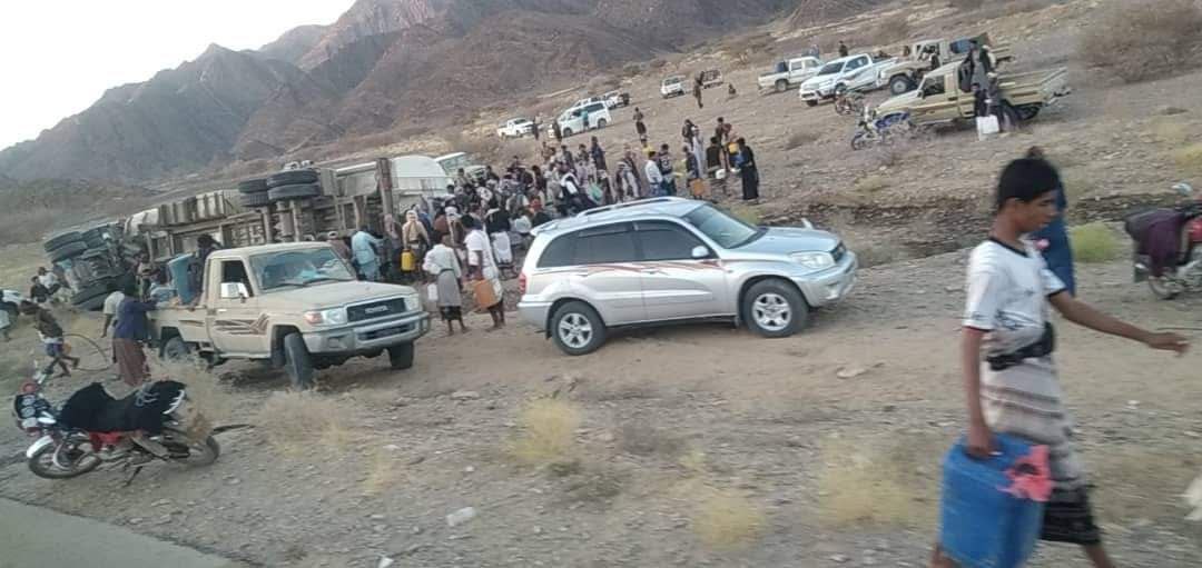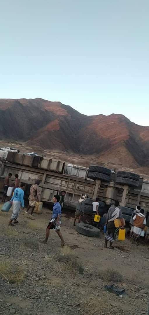 وقال مصدر محلي إن ناقلة محملة بمادة البترول (البنزين) تعرضت لحادث سير عصر اليوم السبت، في منطقة السلف بين مديريتي مرخة ونصاب بالطريق الاسفلتي الرئيسي غرب محافظة شبوة.