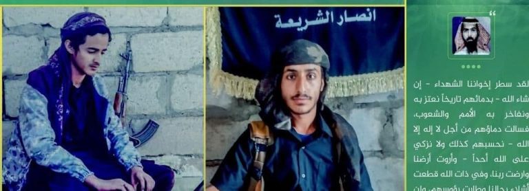 نعت قاعدة الجهاد في جزيرة العرب (ولاية مأرب)، أثنين من عناصره، قتلا بنيران قوات حكومة الإنقاذ الوطني، أثناء مشاركتهما بالمعارك في صفوف قوات التحالف، بالمعارك الدائرة في ضواحي مدينة مأرب.