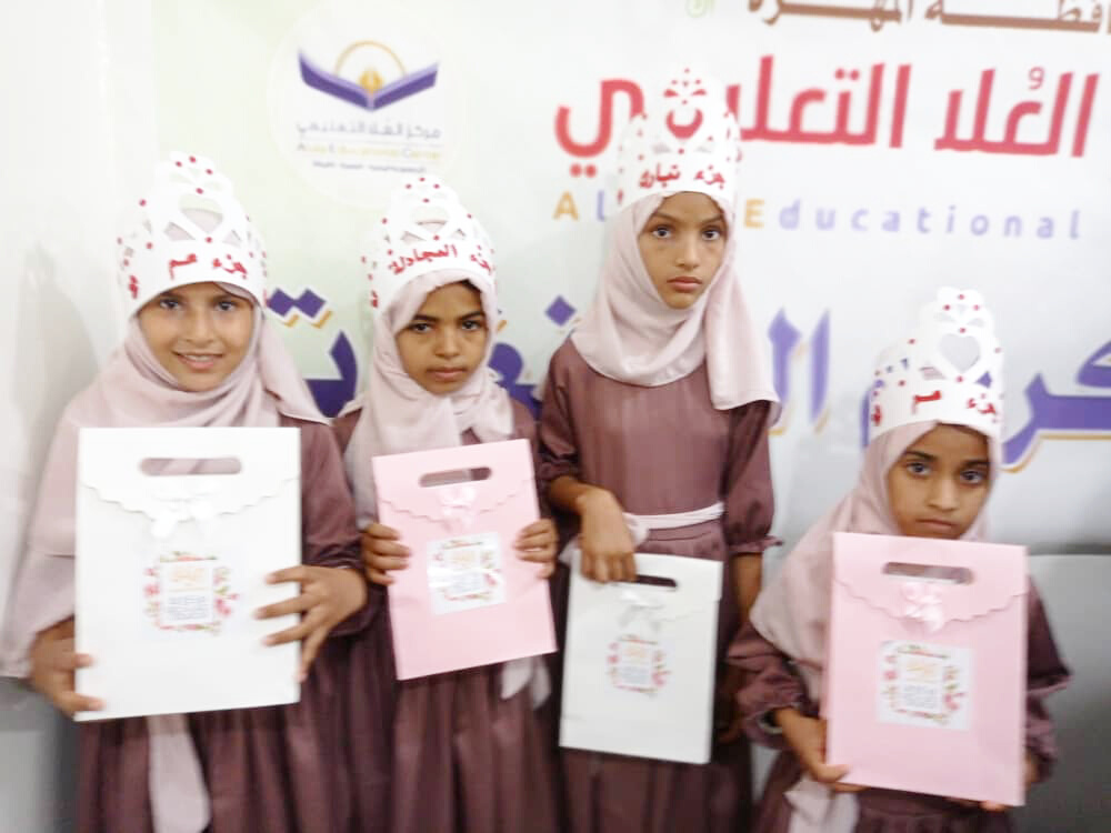 بحفل تكريمي بهيج و برعاية الأستاذ محمد علي ياسر محافظ محافظة المهرة و اشراف الجمعية الخيرية لتعليم القران الكريم، كرم مركز العلا التعليمي مساء أمس الخميس الحافظات الخريجات من الحلقات القرانية و عددهن 3حافظات لكتاب الله تعالى و خمس طالبات صغيرات اكملن حفظ عدة اجزاء من القران الكريم.