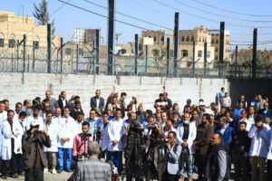 وأشار البيان الصادر عن وقفة احتجاجية نفذتها كوادر ومنتسبو وزارة الصحة الثلاثاء، بالتعاون مع شركة النفط اليمنية في صنعاء أمام مقر مكتب الامم المتحدة، إلى أن “استمرار احتجاز سفن المشتقات النفطية وإغلاق مطار صنعاء الدولي واستمرار العدوان (عمليات التحالف) في ارتكاب جرائم، مثل أسوأ كارثة يواجهها الشعب اليمني”. حد تعبيره.