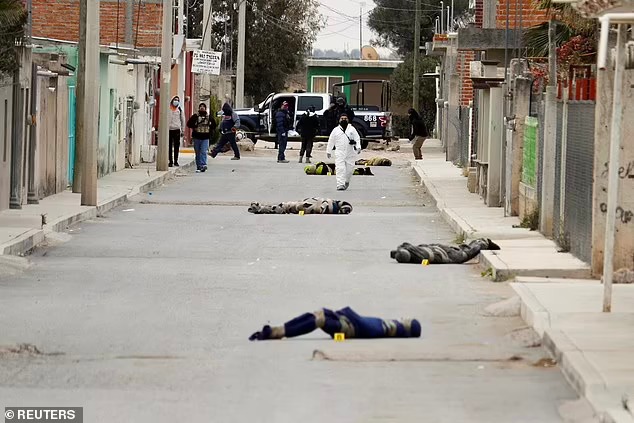 أسفر اشتباك عنيف بين عصابات مكسيكية عن مقتل 16 شخصًا بعد نزاع عنيف ، حيث تم لف 10 جثث في بطانيات وتركت متناثرة في الشوارع وعُثر على ستة آخرين “معلقين” في مستودع قريب. وقال المدعي العام بالولاية، فرانسيسكو موريللو إن الجثث العشر التي عُثر عليها في الشوارع عُثر عليها في بلدية فريسنيلو بولاية زاكاتيكاس بوسط المكسيكية، وفي الوقت نفسه ، تم العثور على الستة الآخرين معلقين داخل مستودع في مجتمع بانفيلو ناتيرا القريب.