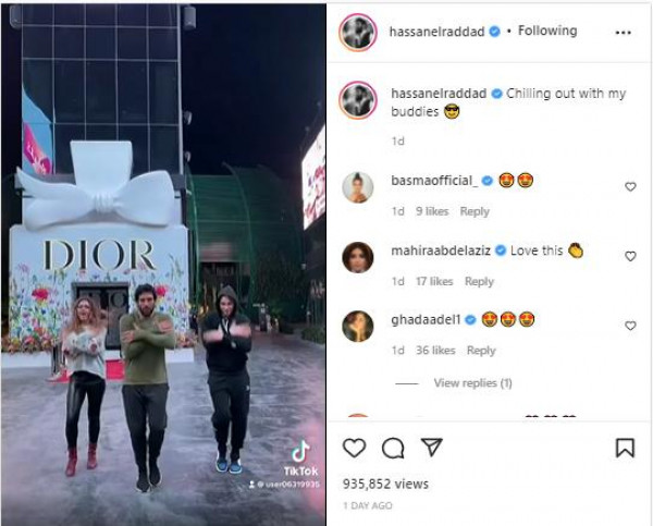 نشر الفنان المصري حسن الرداد مقطع فيديو طريف عبر حسابه الخاص في تطبيق تبادل الصور (انستغرام) وقد ظهر فيه مع صديقيه، وهم يرقصون على أنغام أغنية أجنبية، في الشارع .