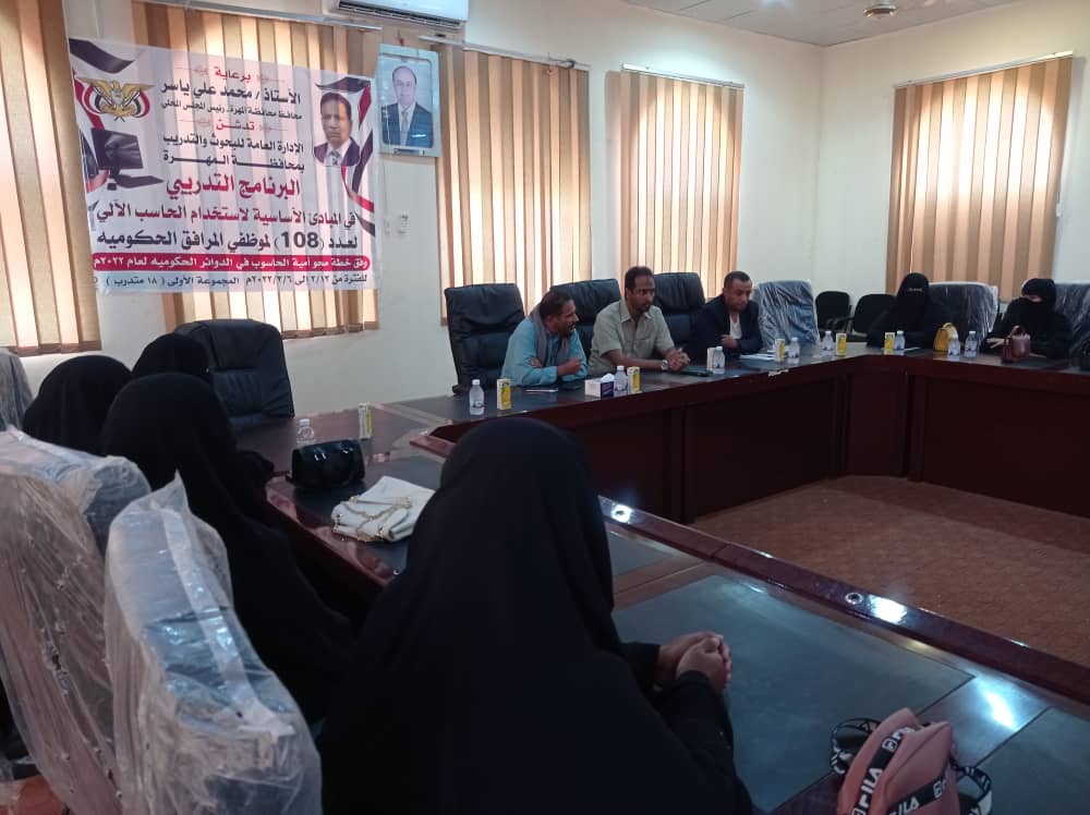وكيل اول محافظة المهرة يدشن البرنامج التدريبي لاستخدام الحاسب الالي لعدد 108 موظف حكومي