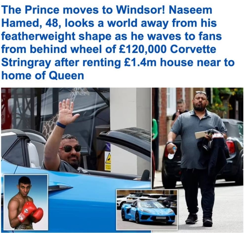 وظهر حميد الملقب بالأمير وهو يلوح للجماهير، الذين تفاجأوا به عندما رأوه داخل سيارة كورفيت سترينجراي البالغ سعرها 120 ألف جنيه إسترليني.
