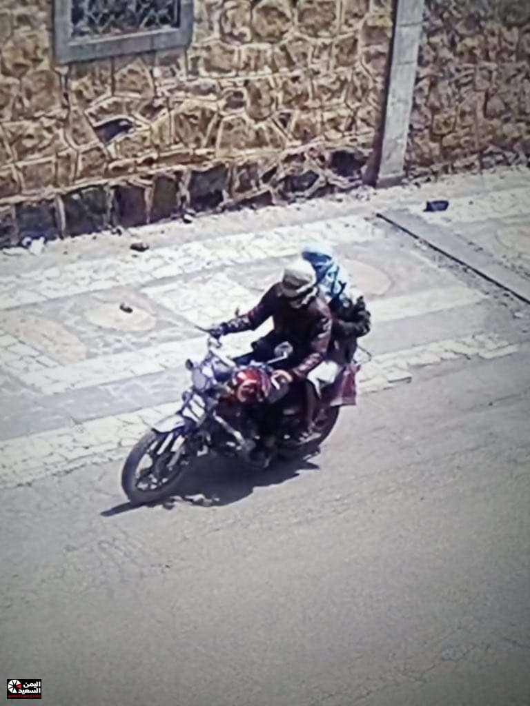 ورجحت مصادر أمنية أن الملثمين الاثنين في الصورة على متن دراجة نارية هما منفذي جريمة إغتيال مدير برنامج الغذاء العالمي في تعز مؤيد حميدي.