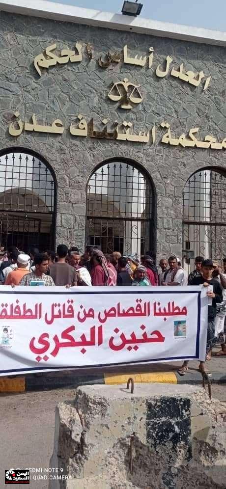 بالصور.. ماحدث امام قاعة محاكمة قاتل الطفلة حنين بعدن قبل قليل