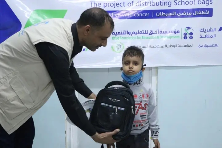 دشنت مؤسسة أفق للتعليم والتنمية OFED عصر اليوم مشروع توزيع الحقائب المدرسية للعام الدراسي (2023 ـ 2024 )، على 159 من مرضى السرطان ، وذلك ضمن "برنامج حملة العودة للمدارس" بتمويل كريم من "مؤسسة صلة للتنمية" .