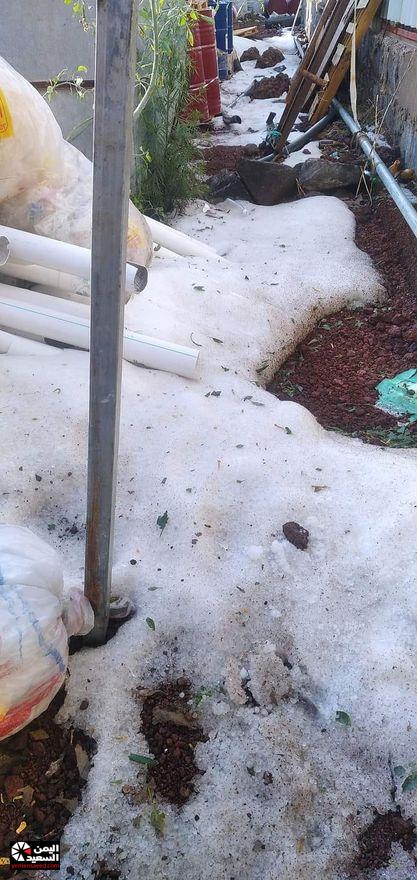 وتسبب هطول حبات البرد (الثلج) بأحجام كبيرة على محافظة ذمار، وبصورة اكبر على حقل قاع جهران الزراعي، مطلع الشهر الجاري في الحاق اضرار مادية كبيرة بممتلكات المواطنين تمثلت في تكسر الألواح والسخانات الشمسية"وأول جمعة بشهر اغسطس الجاري، كان ملايين المواطنين القاطنين في صنعاء وضواحيها على موعد مع حدث غير مسبوق أثار دهشتهم ورهبتهم، تمثل في تساقط الثلوج بكثافة على مساحات واسعة شمالي صنعاء، بعز الصيف اللاهب هذا العام.