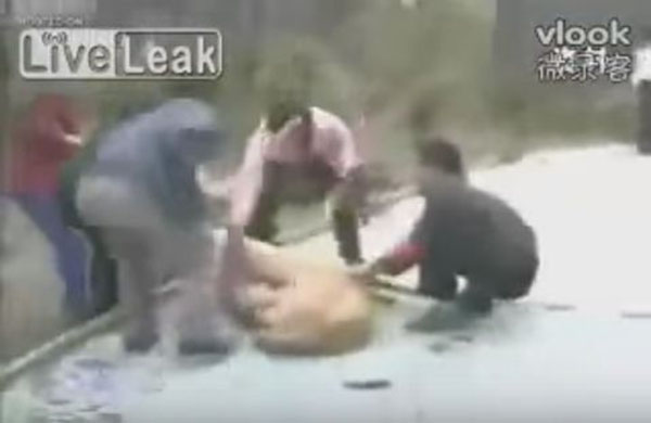 أنقذ زوار إحدى حدائق الصين، فتاة كانت تتنزه بالحديقة من بين أنياب أسد، قبل التهامها بلحظات.