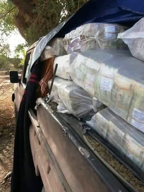 شاهد : الحوثيون ينقلون أموال طائلة وضخمة على متن اطقم عسكرية